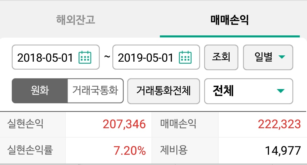 암튼 실현손익 기준 20만 7천원.