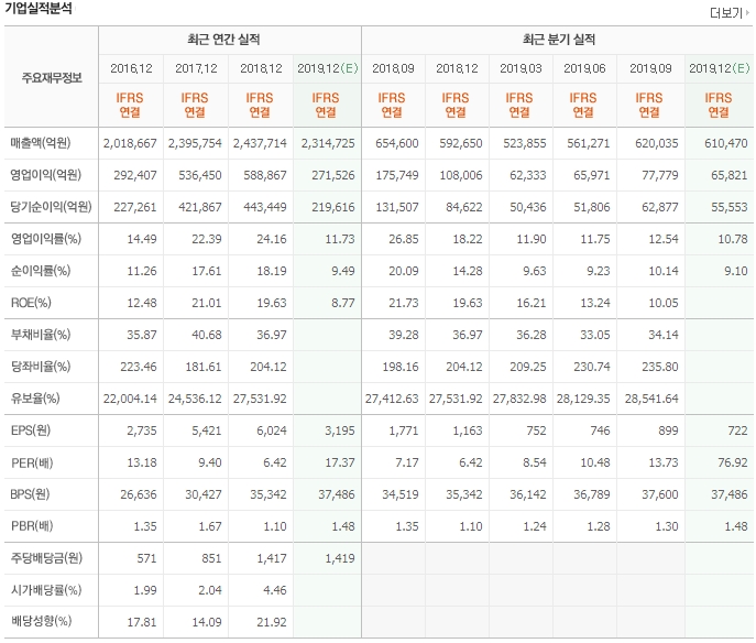 삼전의 2019년 순이익을 보면