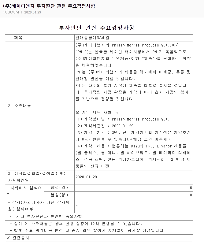 KT&G(033780) 필립모리스(PMI)와 마케팅 제휴주식 2020. 1. 29. 18:31