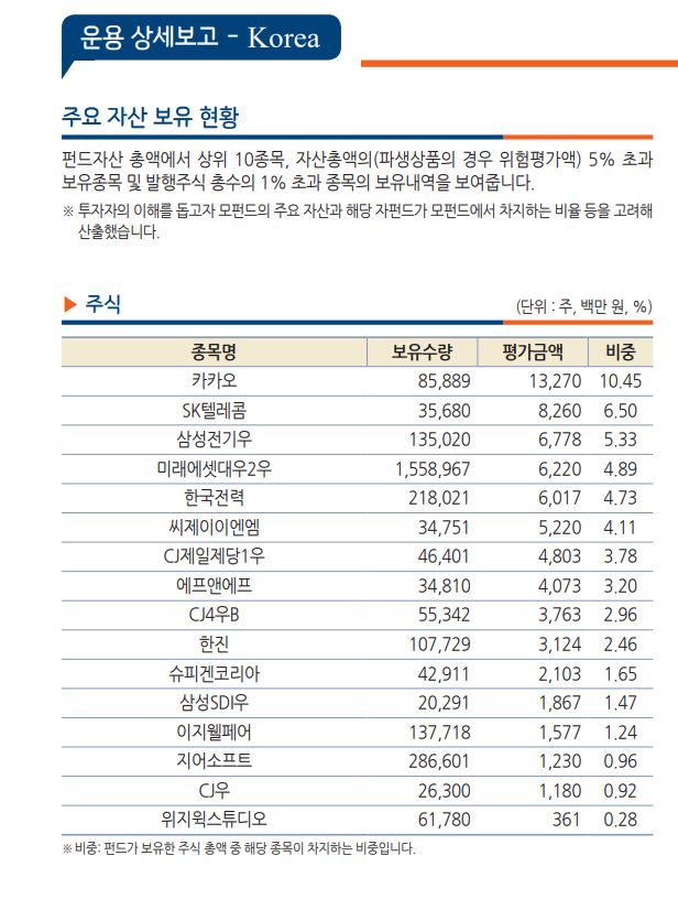 이렇게 펀드에 편입되어있는 종목들을 훔쳐보고는 하는데