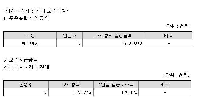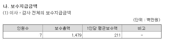 여기는 현재 내가 투자하고있는 회사의 이사, 감사 보수현황이다 (9월 보고서)