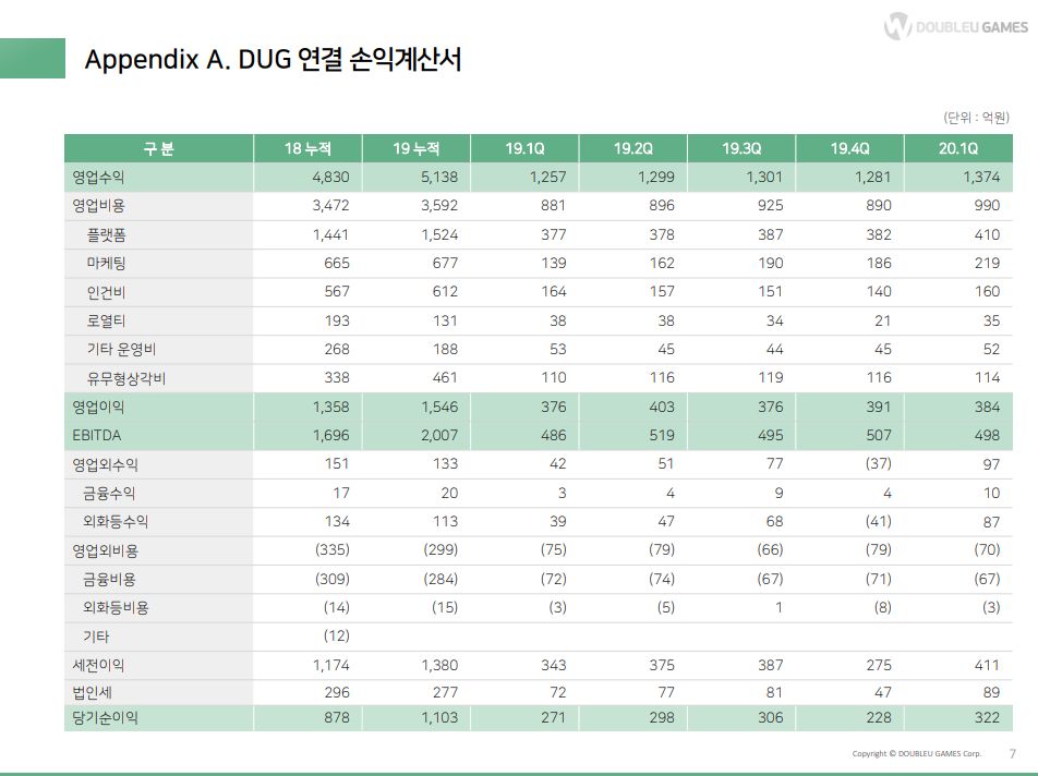 20년 2분기 이후로는 턴어라운드 기대하고있고 투자도 더블다운이랑 동일한 수준으로 가져가려한다.