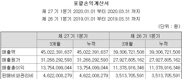 매출원가는 많이 증가했지만 매출액도 그만큼 껑충 뛰었다