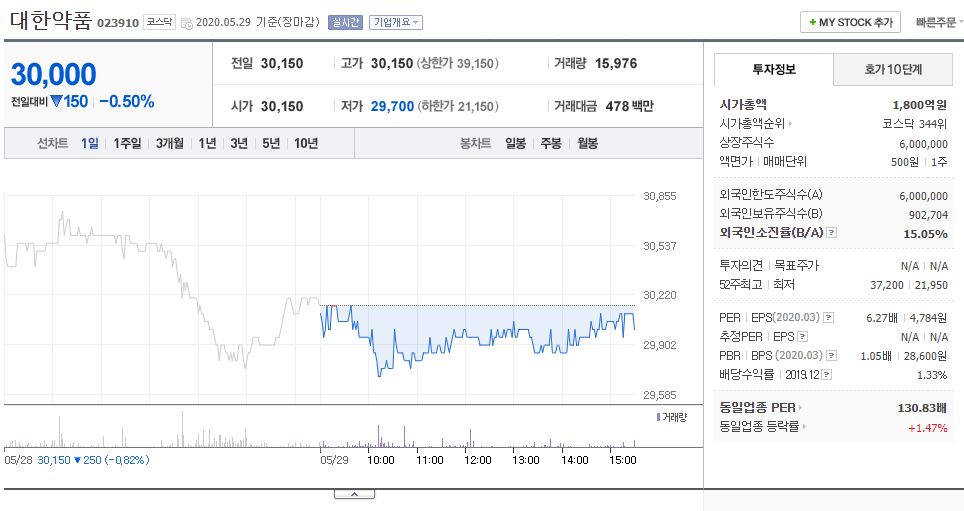 대한약품(023910) - jw생명과학과 비교주식/대한약품 2020. 5. 30. 10:32