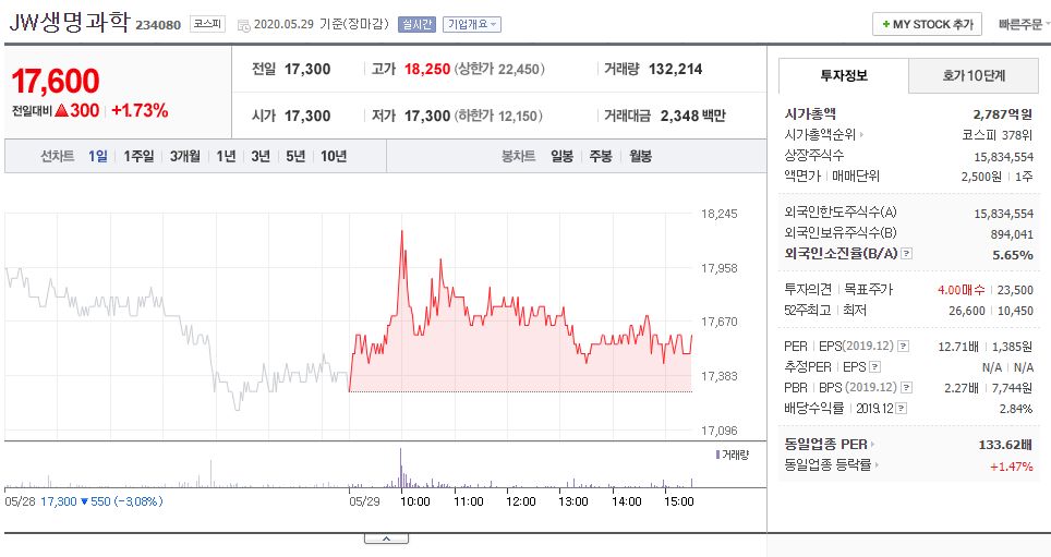 그렇다면 경쟁사인 jw생명과학은 어떨까?