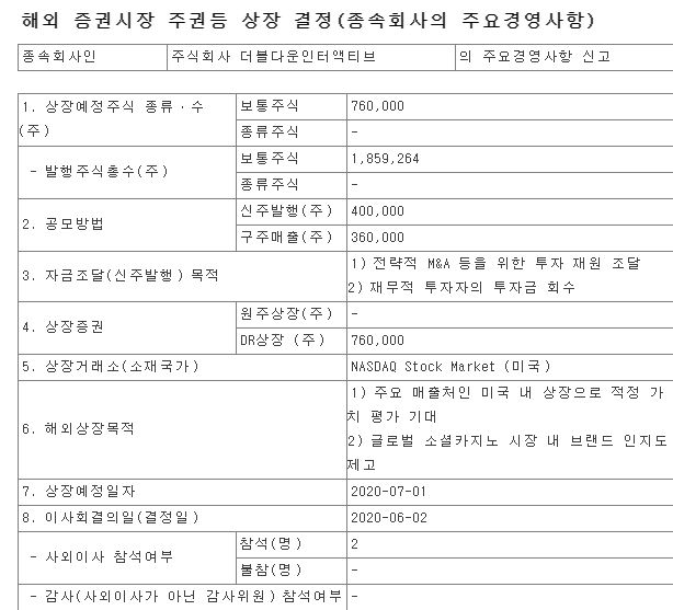 더블유게임즈(192080) 나스닥 상장 공시주식/더블유게임즈 2020. 6. 4. 12:01