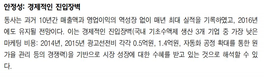 그리고 동사는 어차피 퇴방약이라 큰 마케팅이나 홍보비용이 필요없다는 점