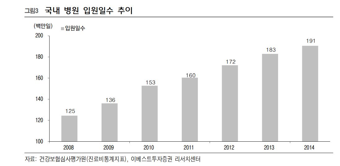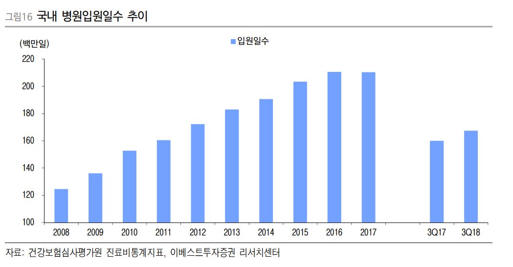 성장이 더디지만 꾸준히 증가하는 입원일 수