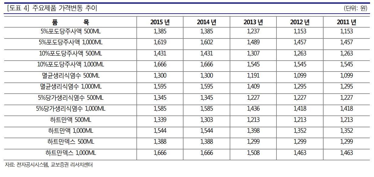 1) 원가율 상승을 고려했을 때 기초수액제 공급가격 하락(퇴방약 91% 제한인데 하락할 수 있나?)