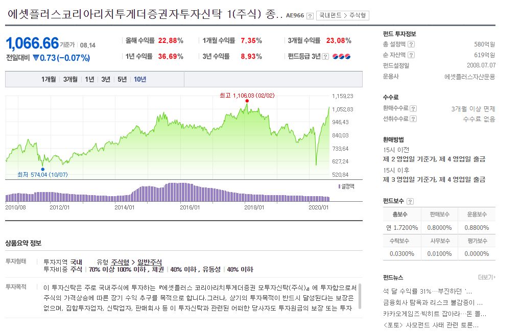 코리아리치투게더라는 에셋플러스 한국 주식형펀드인데