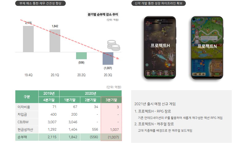 => 연간 게임을 그만큼 개발할 수 있을지도 좀 의문이고 성공여부도 의문이다 워낙 M&A로 성장을 했던 회사라 게임의 흥행여부를 점치기가 쉽지가않다. 오히려 M&A의 성공여부를 더 쳐줄 수 있을듯..