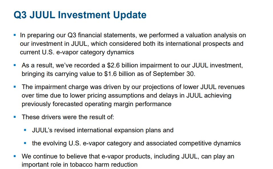 JUUL의 투자는 또다시 나락으로.. 왜냐하면 매출도 줄었고 외국에서도 밴당하고 망했기때문