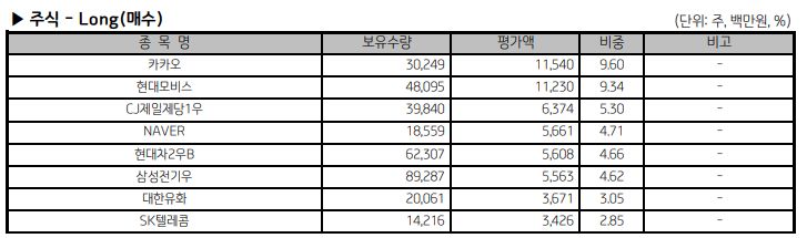코리아리치투게더 펀드 일단 카카오가 평가액 1위기는하나 보유수량을 7만주에서 3만주로 줄임