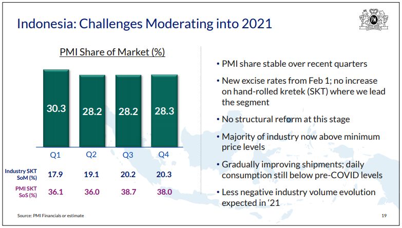 Also both on IQOS, on heat-not-burn products and combustible, the excise taxes are now in, if I'm not mistaken, everywhere. So we have pretty good visibility of where we are, okay? So I don't think it's super COVID related. What is COVID related in the guidance is the range we gave because if you look, Adam, at what happened last year, if we assume 2% to 3% underlying industry decline, even baking in Indonesia, we had a 6.7% industry decline.