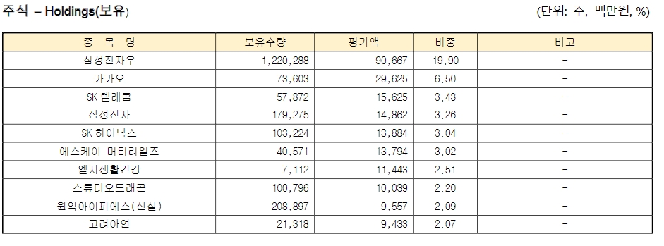 메리츠코리아증권투자신탁 포트폴리오 21.01 내가 아까 종목에서 힌트를 얻을 수 없다고 한 이유가