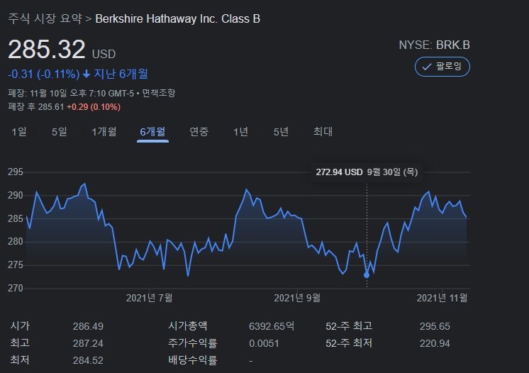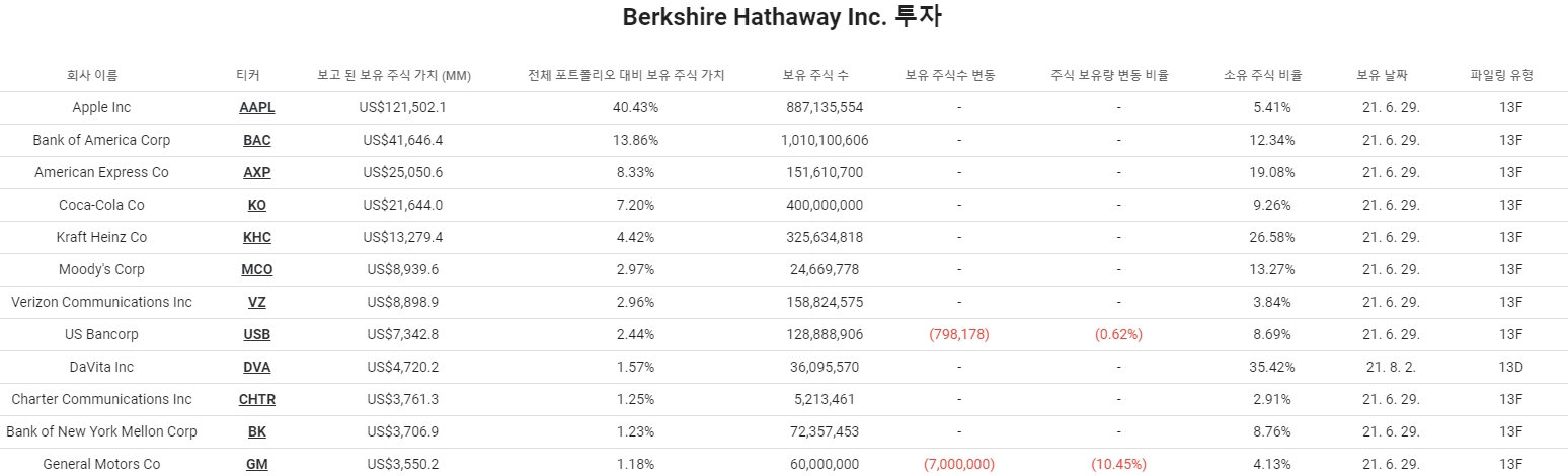 버크셔해서웨이(BRK.B) 21년 3분기 밑줄쫙주식/버크셔해서웨이 2021. 11. 11. 14:15