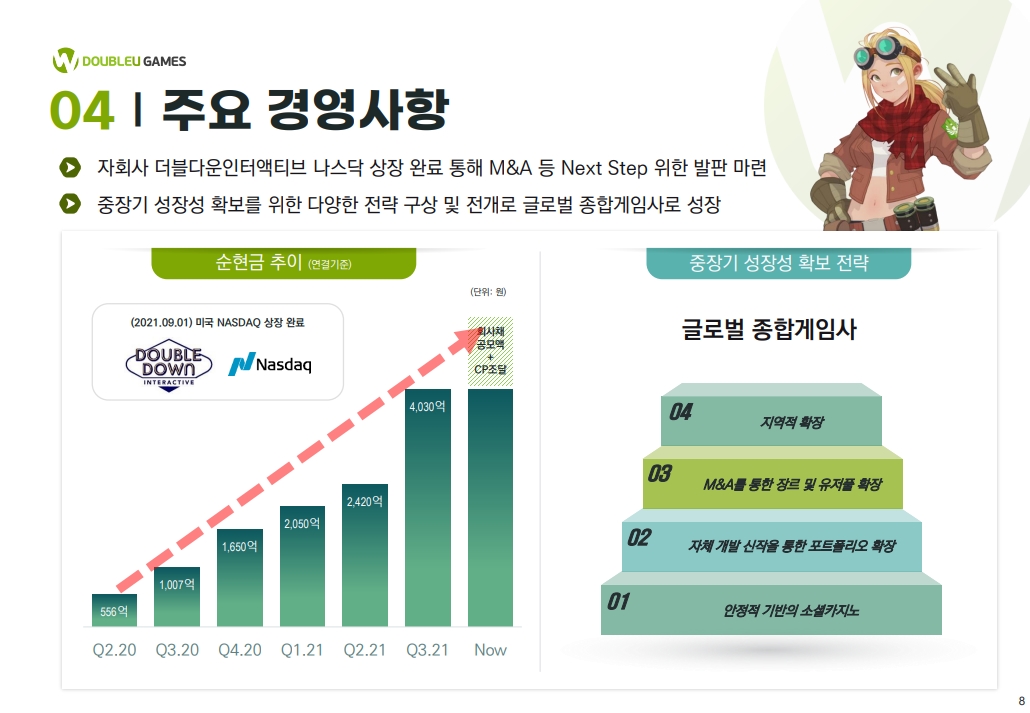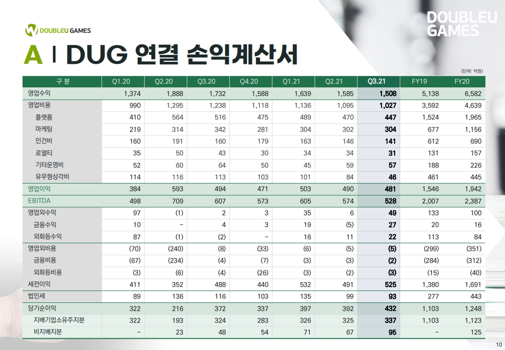 [더블유게임즈]플레이티카(PLTK) 21년 3분기 컨퍼런스콜 (0) 2021.12.07 DoubleDown Interactive(DDI) 3Q21 컨퍼런스콜 (0) 2021.11.16 더블유게임즈 미친 등락폭의 하루 (0) 2021.10.22 더블유게임즈 회사채 발행 모집 대실패와 스코플리 인수 (0) 2021.10.21 더블유게임즈의 회사채 데뷔와 평가 (0) 2021.10.18