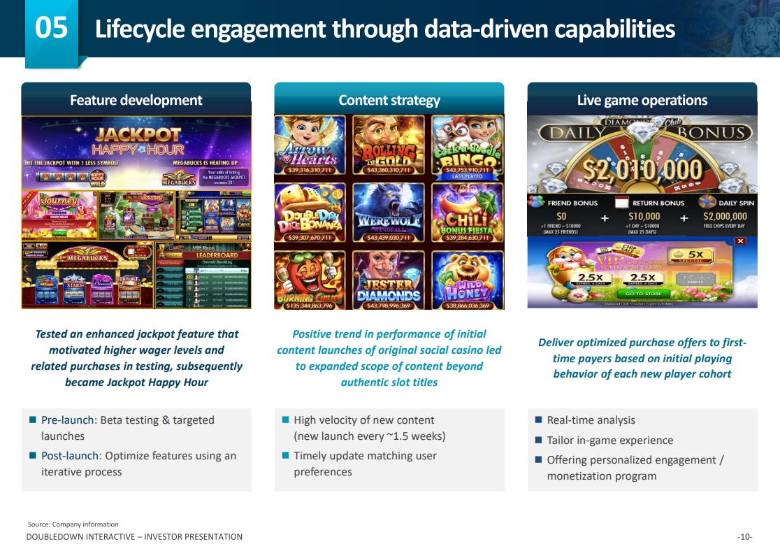 We also have unique access to content through our relationship with IGT and our parent, DoubleU Games. We are able to leverage their slot games, many of which are exclusive to DoubleDown, while also developing our own content to provide a wide array of new and exciting casino-style games for players.