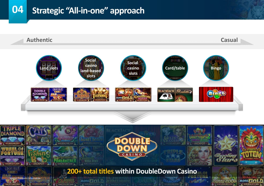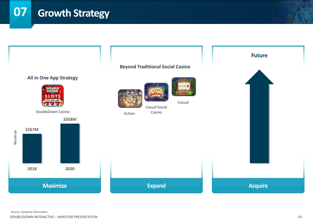 We have what we call an all-in-one approach with our DoubleDown Casino app. We believe that users prefer fewer apps on their smartphones not more so having an all-in-one solution creates better retention, lower user acquisition costs and higher lifetime value. DoubleDown Casino provides a diverse set of offerings to our players, ranging from authentic land-based slots to more casual slot games as well as other casino side games, such as single and table games.