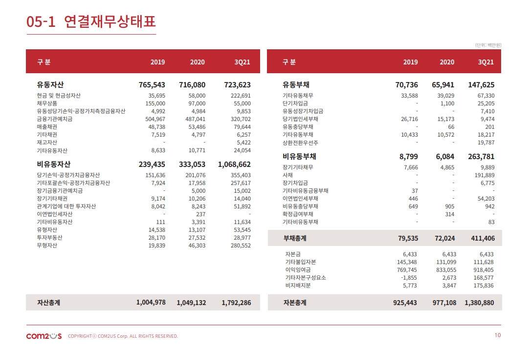 21년 3분기 기준 현금성자산이 약 5천억 두번째로는 돈을 태운것도 아니라 컴투스는 아직도 현금이 많은기업입니다.