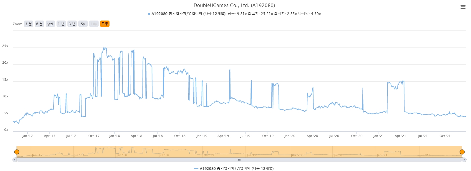 영업이익 최저치 2.35 마지막 4.50 최고치 25 근데 그럼 회사가 비싼가..?